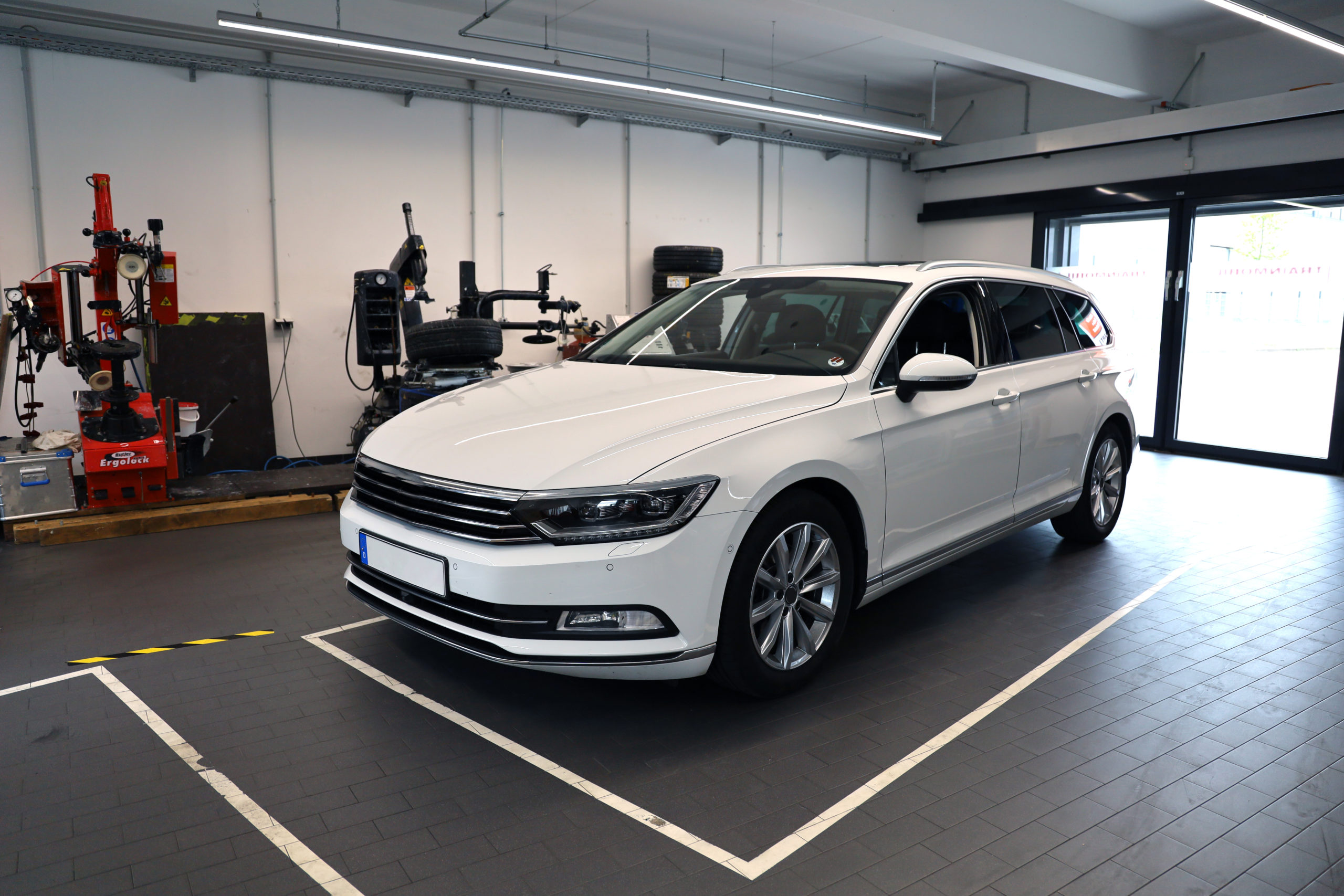 - Eine gleichmäßige Beleuchtung ist erforderlich (Lichtreflexionen auf Kalibriertafel und Fahrzeug können die Kalibrierung stören)