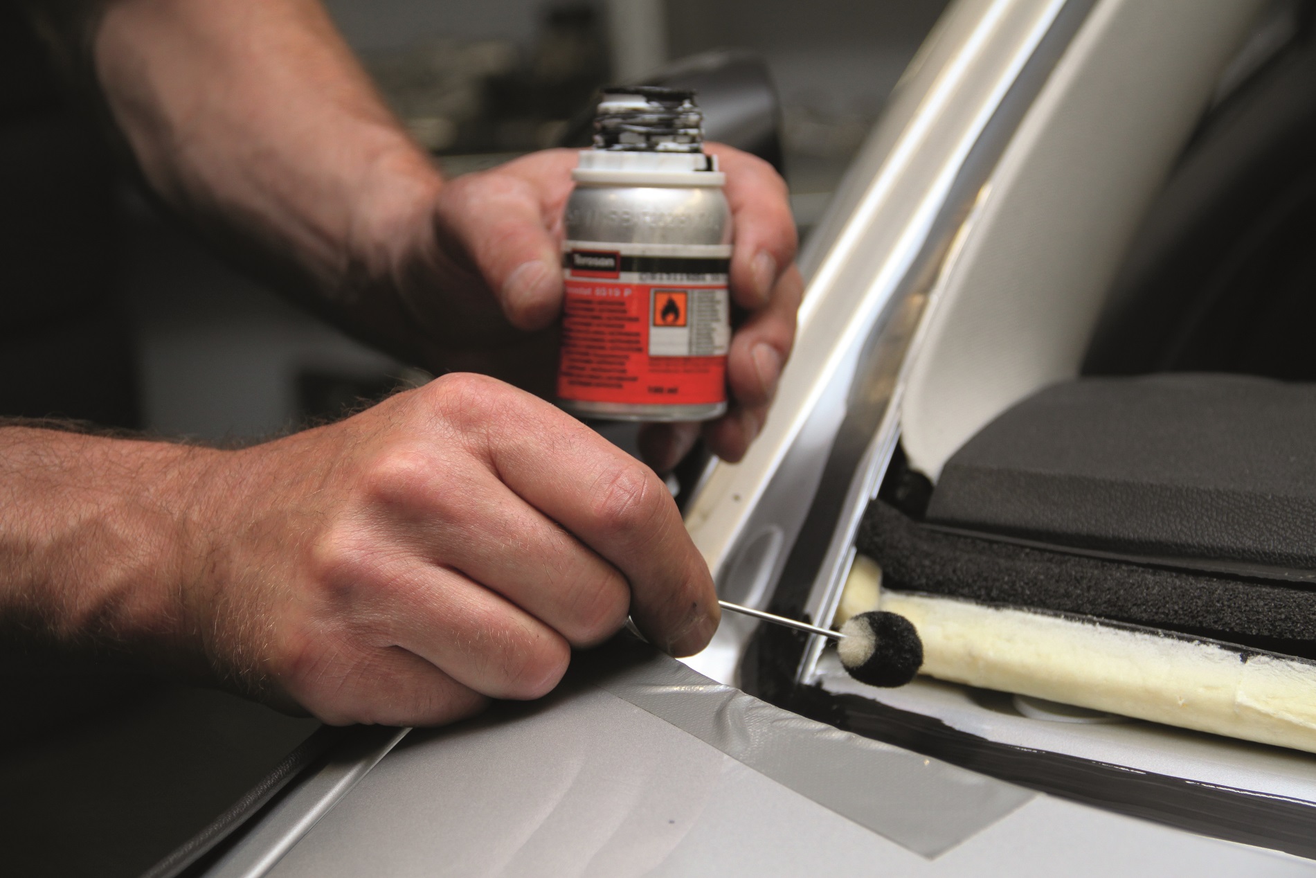 mehr lesenDurch das Auftrage von Schwarzprimer auf der Klebelinie der Scheibe wird eine optimale Haftung der Scheibe gewährleistet. Weiterhin